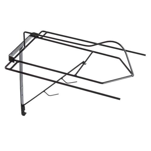 Suporte de parede para selas e arreios AM Ferramentas fabricado em ferro com pintura na cor preta. Modelo retrátil e de fácil manuseio que ocupa pouco espaço quando está dobrado, possui dois ganchos na parte inferior para apoio das tralhas e dois suportes laterais para apoio das mantas.