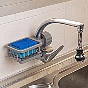 Espaço Livre na Pia: Ao ser fixado na torneira, o suporte deixa a pia desocupada, melhorando a higiene e a organização.