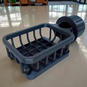 Projetado para ser fixado diretamente na torneira, este suporte prático em impressão 3D oferece uma solução eficiente para guardar esponjas e acessórios de limpeza, otimizando o espaço na pia.