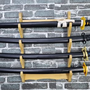 O Suporte de Bambu para 4 Espadas é ideal para colecionadores e praticantes de artes marciais que desejam armazenar e exibir suas lâminas com segurança e elegância. Feito em bambu resistente, oferece durabilidade e um visual sofisticado, combinando perfeitamente com salas, escritórios ou espaços de treinamento.