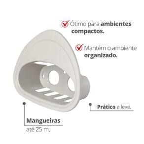 Suporte fixo para guardar mangueiras de forma organizada em ambientes compactos como sacadas ou áreas de lazer.