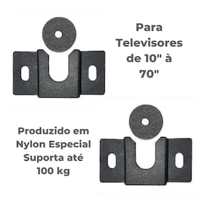 Suporte fácil instalação, para televisores de 10" a 70". Suporte fixo, pode ser fixado na parede ou painel de MDF ou Madeira Suporta até 100 kg Produzido em Nylon Especial, Matéria Prima de Alta Qualidade e Resistência