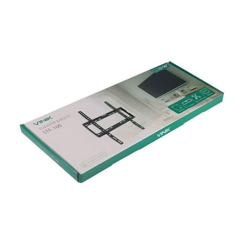 Suporte Fixo Tv Led 23-56 Stf-100 Experience a seamless blend of modern design and reliable performance with the Vinik STF-100 Fixed Wall Mount for TVs. This robust mount is specially engineered to securely hold your LED, LCD, or plasma TV, ranging from 23 to 56 inches, with a weight capacity of up to 30kg. Crafted from high-quality steel carbon treated with anticorrosion and finished with a durable electrostatic epoxy coating, the STF-100 ensures exceptional strength and longevity. Boasting universal compatibility with VESA mounting patterns up to 400x400, this mount effortlessly accommodates a wide range of TV models. Its sleek black finish complements any home décor, while the built-in level bubble guarantees precise and secure installation. The STF-100 positions your TV a mere 25mm from the wall, maximizing your viewing pleasure without compromising space.