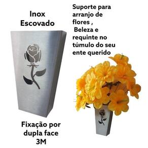 Suporte Floreira Decorativa Para túmulo E Lápide Floreira túmulo Cemiterio Suporte para arranjo de flores . Ideal para ser em sepultura . principalmente em túmulos de gaveta Produto feito em inox escovado , proporcionando beleza e alta durabilidade. Tamanho ideal para arranjos grandes . Suporte fixado com fita dupla face 3m. Fácil instalação, e furos na parte inferior para não acumulação de água . Dimensão. 20 cm de comprimento. 12 cm de largura Nossa empresa tem uma linha diversificadas de suportes em geral , proporcionando facilidade e comodidade para o dia a dia dos nossos clientes . Marca: Não Informado
