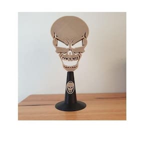 Suporte Fone De Ouvido Headphone Stand De Mesa Caveira DESCRIÇÃO: Suporte para fone de ouvido estilo Caveira, impressa via impresão 3D Este molde é exclusividade e registrado pela SNS3D. ITENS INCLUSOS 1 um suporte para fone de ouvidoINFORMAÇÕES TÉCNICAS - ESPECIFICAÇÕES Material: Plástico ABS Premium Peso: 50 gramas Cor: Preto Fabricante: SNS3DObservações Não usamos tinta nos produtos. A matéria prima já é da cor informada. No campo de especificações técnicas você encontrará o material utilizado para este produto. De acordo com cada tipo de produto, usamos um material específico para que atenda a necessidade e objetivo do produto. O material pode variar, mas o método de fabricação é o mesmo. Fabricamos nossos produtos via impressão 3D. Imagens ilustrativas Fabricado via impressão 3D, este tipo de item possui marcas características do método de fabricação. Fone de ouvido não incluso Marca: Sns3D