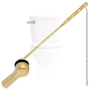 Hygie Rinse Substituição do cabo do vaso sanitário - montagem frontal universal, alavanca de vaso sanitário dourado escovado com corrente de melindrosa de aço inoxidável, kit de reparo de vaso sanitário - Ajuste de montagem frontal: Construção com design de montagem frontal para quase todos os tanques de banheiros da marca, como compatível com Kohler/TOTO/American Standard/Mansfield/Gerber. Observe que não é adequado para tanque de vaso sanitário de montagem lateral - Cabo de metal: Feito de uma alça de latão sólido e chave inglesa banhada a ouro escovado, que durará por uma vida longa e não enferruja, o acabamento fino do cabo se encaixa bem na maioria dos acessórios de banheiro e estilos de decoração - Incluído na embalagem: 1 peça de suporte frontal com alça embutida + 1 peça de correntes de aço inoxidável, uma boa peça de vaso sanitário para substituir seu kit de tanque de vaso sanitário antigo, também pode evitar descarga acidental - Fácil de instalar: a alavanca do tanque do vaso sanitário não é muito grande e você pode consertá-la manualmente, sem qualquer ferramenta, levando minutos - Tamanho da alavanca de descarga do vaso sanitário: Largura da chave: cerca de 7,3 cm/2,87 pol; Comprimento da alavanca: cerca de 21 cm/8,26 pol; Comprimento das correntes de melindrosa incluídas: 35,3 cm/13,9 pol, ajustável para todos os tanques de vaso sanitário