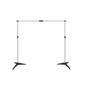 02 hastes para a parte superior que atingem 2,00m de largura e permitem regulagem mínima de 1,00 metro. Seu sistema de aperto e trava nas peças de regulagem garante firmeza para que a haste não desça ou deslize para baixo. Está incluso uma bolsa de tnt para transporte do suporte e 15 presilhas plásticas. A base é feita de nylon e é composta por 4 peças, tornando o seu transporte muito prático. As peças são todas encaixadas e muito fáceis de montar e ao final se tornam uma base muito sólida e estável. Tecido 2x3m largura x altura