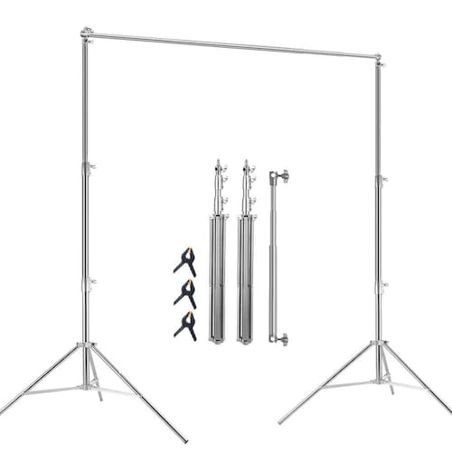 O suporte Fundo Infinito SL280-BS150 Estande Aço Inox para Estúdio Fotográfico 2.8x1.5m é um sistema de sustentação leve, resistente e extensível, perfeito para montagem de Fundo Infinito e equipamentos de Estúdio. Projetado para diversas aplicações, o conjunto é composto por 2x Tripés de Iluminação Light Stand Aço Inox com Amortecimento de Mola com altura máxima de 2.80 metros 280cm , 1x Barra Retrátil Telescópica Transversal com comprimento máximo de 1.5m 150cm e 3x Alicates Garra para fixação de tecido. É o sistema ideal para a complementação ou ampliação de um Estúdio de Fotografia e de Filmagem.Este kit suporte Fundo Infinito Stand ajustável é feito de Aço Inoxidável Austenítico, que promove resistência à corrosão e alta durabilidade. Seu design com estrutura robusta oferece capacidade de carga estável e resistente, suportando equipamentos de até 10kg. além de fornecer montagem rápida e segura, o Suporte Fundo Infinito SL280-BS150 é ideal para estúdios fotográficos, vídeos, fotos 3x4, ensaios de gestante, Newborn, ensaios de moda e editoriais, entre outros. obtenha uma resistência excepcional para trabalhos pesados em estúdio profissional ou doméstico.Tripé de Iluminação Light StandOs 2x Tripés Light Stand em Aço Inox Profissionais possuem 3 Seções, cada estágio integra uma trava individual que permite a regulagem da altura do tripé. As seções também são equipadas com molas amortecedoras que reduzem o impacto de uma queda repentina e brusca ao ajustar a altura, oferecendo maior segurança e ajudando a proteger o equipamento. A base do Tripé de Iluminação com Amortecimento de Mola para Estúdios se liga às pernas através de dobradiças metálicas, o que facilita sua abertura e fechamento. Ambos os tripés alcançam uma altura máxima de 2.80 metros 280cm , altura mínima de 100cm, pensado apenas 2.35kg e suportado equipamentos de até 10Kg.Barra de Extensão TelescópicaA Barra Retrátil Telescópica Transversal extensível possui 3 Seções, tendo um comprimento máximo de 1.5m 150cm e mínimo de 65m, o ajuste de tamanho ocorre por meio de um mecanismo de trava giratória, você pode torcê-las e elas travam no lugar, evitando que a haste se estenda acidentalmente além do que você deseja. Com capacidade para equipamentos ate 10kg, o conjunto inclui também 3x Alicates Garra para a fixação de tecidos de Fundo Infinito, que podem segurar panos de fundo, papel fotográfico e tecidos de Chroma Key com precisão e firmeza.Principais Características: Sistema de Suporte Profissional para Fundo Infinito, alta durabilidade e resistência Estande fácil de montar, leve e extensível, com capacidade para equipamentos de até 10Kg 2x Tripé de Iluminação Light Stand de Aço Inox Amortecimento de Mola com altura até 2.8 metros 1x Barra Retrátil Telescópica Transversal Aço Inox com comprimento de até 1.5 metros 3x Alicates Garra para a fixação de tecidos, lonas, fundo Chromakey ou papel fotográfico feito em Aço Inoxidável Austenítico, estande de alta resistência perfeito para Estúdio Fotográfico ideal para fotografia de retratos, filmagem de longa-metragem, gravações de vídeo, fotografia de moda, fotografia de produtos, objetos e muito mais.Tecido de Fundo Infinito vendido separadamente. Imagens Ilustrativas.