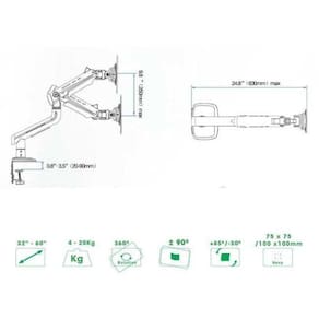 - vesa: 75x75 - 100x100 mm - rotação: 360 - inclinação: 50 - capacidade de carga: 2 a 20kg - comporta monitores de até 60 polegadas - instalação pode ser feita por morsa ou furação. - led rgb Marca: Não Informado