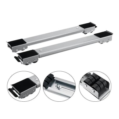 Feito em aço carbono e plástico resistente, o Suporte de Geladeira, Fogão e Máquina de Lavar Base Carrinho é durável e confiável. Ele é composto por dois carrinhos ajustáveis com freio, o que garante estabilidade e segurança durante o deslocamento.