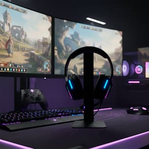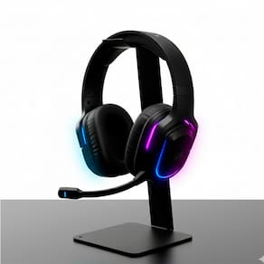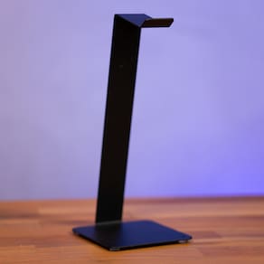 Suporte para headset em aço carbono com pintura epóxi, acabamento preto fosco. Design robusto para organização e proteção de fones de ouvido em setups gamers e home office.Vendido por Inovar Metais e entregue por Extra
