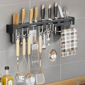 8 Ganchos Resistentes: Permite organizar desde colheres e espátulas até itens maiores como panelas e utensílios de churrasco.Material Durável: Construção em aço inoxidável de alta qualidade, resistente à corrosão e que mantém uma aparência impecável ao longo do tempo.Economia de Espaço: Proporciona um acesso fácil e rápido aos utensílios, otimizando cada momento do preparo dos alimentos.Design Moderno: Adiciona um toque de elegância à sua cozinha, combinando com qualquer decoração.Fácil Instalação: Acompanha buchas, parafusos e travas para uma fixação segura e prática.