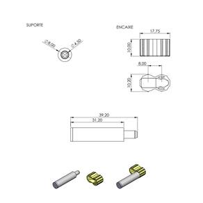 Material: Poliacetal e Zamac Acabamento: Niquelado / Cinza Medidas do suporte: 39,2 mm de comprimento total Encaixe: 17,7 mm x 10 mm Peso aproximado: 12 g por unidade