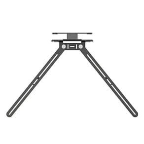 Design de braço oscilante; Monte dispositivos compatíveis acima ou abaixo da tela; Profundidade ajustável até 50 mm Nivel horizontal ajustável +/- 1º; 10º adaptador de inclinação da barra de video para otimização do ângulo acima da tela.