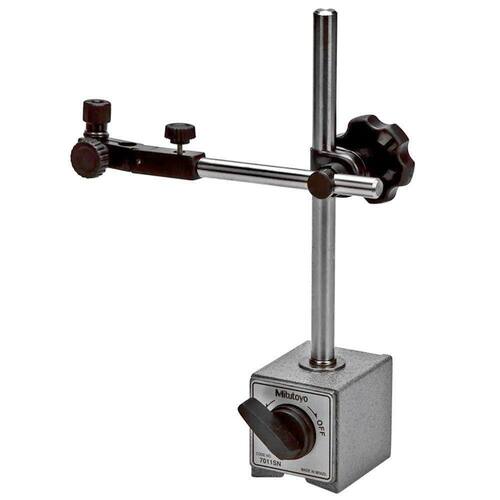 Suporte magnético coluna fixa com ajuste fino Mitutoyo - 7015-10CARACTERÍSTICAS:Coluna fixa com braço articulado e ajuste finoSuporte universal para relógio comparadorNão acompanha relógio comparadorESPECIFICAÇÕES TÉCNICAS:Força Magnética: 600N vertical (força retrátil)Base: 50x60x55mmFuso para o canhão: 9,5mmRaio de alcance: 160mmAltura total: 235mm