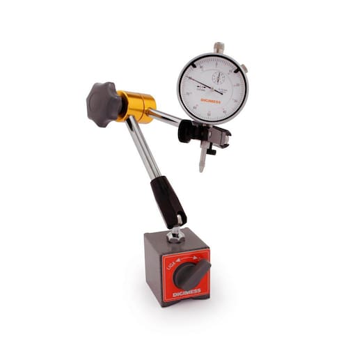 Suporte Magnético Articulado para Relógios Comparadores e Apalpadores Digimess 270.240BNão acompanha Relógio. Coluna e braço articulados, com ajuste fino, facilitando o posicionamento do relógio, Fixação por trava mecânica, Base prismática, para fixação em superfícies planas ou cilíndricas, Dimensões da base de 55x50x69mm, Força magnética de fixação de 60Kgf vertical , Chave liga/desliga do magnético, Altura total de 320mm, Encaixe para canhão ou haste tipo rabo de andorinha de D8mm, Encaixe diretamente nas guias do relógio apalpador,AtençãoA imagem aqui apresentada é meramente ilustrativa e foi fornecida pelo fabricante. Ela não reflete as dimensões reais do produto. Para decisão de compra considerar a descrição e especificação técnica do produto.