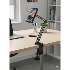 O grande diferencial do DeskArm SU-261 reside na sua ergonomia avançada e no sistema de fixação tipo morsa (clamp). Ao ser ancorado na borda da mesa ou bancada, ele libera o espaço útil que suportes convencionais ocupariam, permitindo uma organização superior da área de trabalho. O mecanismo de fixação é ajustável e possui proteções internas para não danificar o mobiliário, garantindo uma ancoragem sólida e livre de vibrações. Esta estabilidade é fundamental para quem realiza gravações de vídeo "overhead" (visto de cima), lives ou participa de reuniões virtuais, onde a trepidação da imagem pode comprometer a qualidade da transmissão profissional.