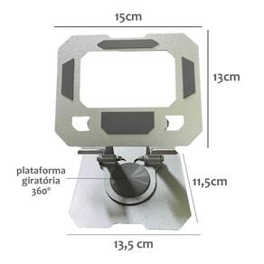 Dimensões da Base suporte: 11cm x 13,5 x 2mm