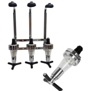 Suporte metal dosador parede c/torn.Dest.Sev.Bebida p/3gar ref:ap36666-3zp Características Facilita a medição e mistura de bebidas. Pode ser montado na parede ou em uma prateleira e é certo para adicionar caráter a qualquer bar e cozinha. Permite que você distribua facilmente 3 tipos diferentes de licor com a simples torção de uma válvula. Tem um recipiente com mola que contém garrafas de vários tamanhos até 1 litro. Maneira elegante e elegante de dispensar álcool. Evita desperdícios ou derramamentos. Especificações: Material: liga de alumínio + abs Cor: prata