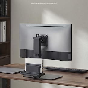 E não para por aí! O SMD-100 também oferece espaço extra na sua mesa. Integrado, vem com suporte para mini CPUs, mantendo-a fora da superfície e emancipando você de fios e uma área de trabalho congestionada.Organize-se com a placa VESA rotativa de 360 que permite ajustar o monitor para a posição ideal e o clipe de cabo que mantém tudo arrumado e limpo.