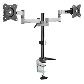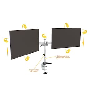 O suporte multiarticulado de mesa ELG, para 2 monitores, modelo F50D2, possui coluna vertical rígida de 36,5cm para o ajuste de altura dos braços articulados. Para total conforto e ergonomia, permite articular os braços a ainda girar e inclinar as telas individualmente. É compatível com monitores e TVs LCD, LED de 15" a 27" com até 8kg e que permitam fixação conforme os padrões de fixação VESA 75x75 e VESA 100x100mm, presentes na traseira das telas. *O que é VESA? É a distância horizontal e vertical entre centros dos furos de fixação, localizados na traseira do monitor. O suporte F50D2 possui estrutura em aço carbono e braços em alumínio injetado, proporcionando assim, durabilidade e segurança com acabamento de alto padrão e sem cantos vivos. Versátil, acompanha ao kit do produto, estrutura para fixação do suporte tanto em borda de mesas, quanto sobre a mesa. ELG, Suportes Inteligentes.