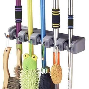 Especificações/características do Produto - Material: Plástico - Cor: Cinza - Acessórios para vassoura: 5 - Gancho: 6 - Tamanho Aproximado : 41 x 6 x 10 cm - É Fixado com buchas e Parafusos