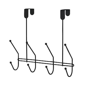 Suporte Multiuso Cabide De Porta 4 Ganchos Cabideiro - Preto O cabide de porta serve para deixar seu quarto, banheiro ou escritório organizado. Super moderno, clean e atual - cor Preto Este modelo possui 4 ganchos, economiza espaço, e permite guardar 4 itens, como roupas, toalhas, bolsas e acessórios. De fácil instalação, já que não é necessário o uso de ferramentas, basta enganchar o cabide na parte superior da porta. Feito de aço black, com proteção anti ferrugem, apresenta grande durabilidade e resistência.