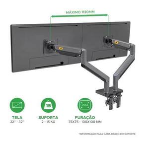 Suporte G-35 duplo para TV/Monitor de 22 a 32 polegada. A North Bayou é uma empresa especializada na fabricação de suportes para todos os tipos de TV e monitores. Sua grande capacidade no desenvolvimento e design de produtos funcionais, focada na segurança, qualidade e estética a posicionam mundialmente. Seus produtos contam com certificações internacionais da indústria com isto garante a sua qualidade e a durabilidade.