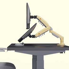 O F80-XD Amarelo North Bayou é um suporte para monitor com movimento total para instalação na mesa. Ele é projetado e construído com o conceito de interface ecológica para melhor visualização e experiência do usuário. Com seu design de flexibilidade em braços retráteis e extensíveis, economiza espaço em uma área limitada.