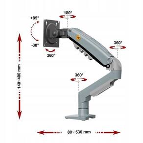 Tipo de Suporte - Pistão a Gás Tamanho mínimo da tela - Tamanho máximo da tela: 17 - 30 Padrão VESA - 75x75, 100x100 Lugar de montagem: Mesa Peso suportado : Min. 2kg Máx. 9kg É inclinável: Sim É articulado: Sim Posições: Paisagem e Retrato Marca: Não Informado Ean: 6943223116469