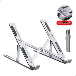 Esse suporte possui 6 opções de ajuste entre 15 e 45 graus, permitindo que você encontre a inclinação ideal para o seu conforto. Ele é compatível com notebooks e dispositivos em geral com telas entre 6 e 17 polegadas, garantindo versatilidade de uso. O material utilizado na sua fabricação é alumínio escovado premium reforçado, que confere resistência e durabilidade ao produto. Além disso, o suporte conta com revestimento de silicone, que evita que o seu notebook escorregue.