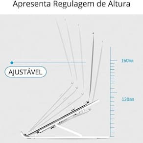 Corrija a linha do usuário à tela do notebook, evite fadigas nas regiões lombar, nuca e pescoço e trabalhe com mais eficiência. Características: ajustável em altura para atender às necessidades de cada usuário leve e compacto, ideal para viagens pronto para usar, sem necessidade de parafusos ou ferramentas suporta notebooks com base inferior até 2,5 cm de espessura dúvidas frequentes: 1. 2. 3. É confiável Sim, somos uma loja oficial e oferecemos garantia de 30 dias em todos os nossos produtos. 4. Os produtos possuem garantia Sim, oferecemos garantia de 30 dias em todos os nossos produtos. Caso ocorra qualquer problema, iremos tratar da melhor forma para resolver o ocorrido. Faça sua pergunta e responderemos rapidamente Espero que essa versão revisada seja mais atrativa e atraente para os seus clientes