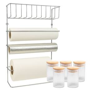 Organizador de Cozinha Cook 4 em 1 em Aço Cromado – Porta Rolos e Porta Temperos com Suporte de Parede e 5 Mini Potes Herméticos em Vidro Borossilicato e Tampa em Bambu 90ml!