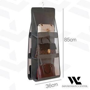 Dimensões: organizador 90 x 35 cm e bolsos 35 x 35 x 11 cm Composição: TNT e PVC 1 Un Organizador de Bolsas Com 6 Divisórias