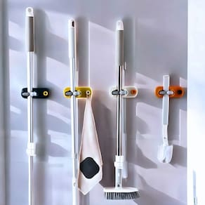 * Material: Plástico ABS de alta resistência * Cor: Disponível na opção Bege com Laranja * Capacidade de peso: Suporta utensílios de limpeza comuns, como vassouras, rodos e outros acessórios leves.