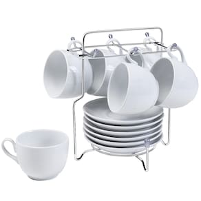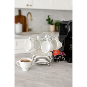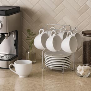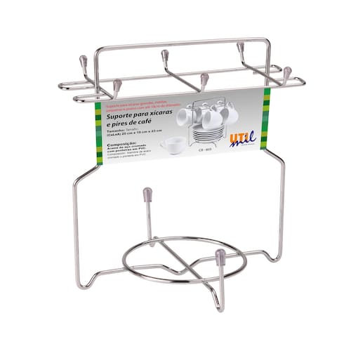 O Suporte para Xícaras e Pires da Utimil é a escolha perfeita para quem deseja organizar e servir café com elegância. Com design funcional, ele acomoda 6 xícaras, 6 pires, cápsulas de café e guardanapos, deixando tudo ao alcance das mãos.