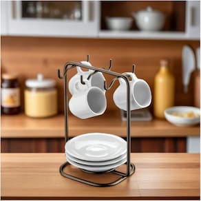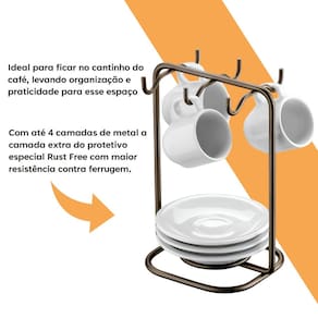 O Suporte tem capacidade para 6 xícaras e pires com até 13cm de diâmetro.