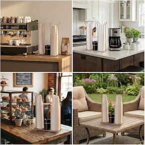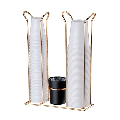 Os copos descartáveis necessários em casa ou no escritório para chá, café e água ficam concentrados no Organizador. Além disso, tem compartimento especial para os mexedores. Utilize copos de café de 50 e 80ml, com diâmetro máximo de 5,5cm, e copos de água de 200ml, com até 7cm de diâmentro.