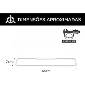 Linha: Aramados Material: Aço Carbono e Plástico Injetado Embalagem: Individual Capacidade de carga: 5 kilos Medidas: Comprimento 450mm x Altura 70mm x Espessura 06mm Ean: 7897694390059