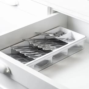 A Linha Clear é a união entre transparência e organização que independente do ambiente, promove um design perfeito para organizar e aumentar o espaço das suas gavetas. O organizador de talheres foi pensado para permitir diversas composições e proporcionar máximo aproveitamento de espaço nas gavetas, por isso, traz 5 opções de organização e ícones indicando a setorização dos talheres. Combine, encaixe e enxergue facilmente o conteúdo, mantendo tudo em ordem. Produzido em material resistente que proporciona alta transparência, fácil higienização e praticidade na hora de organizar. A linha clear é indispensável para auxiliar você na organização da sua casa.