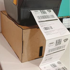 O suporte tem capacidade para etiquetas térmicas de até 10 x 15cm.
