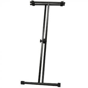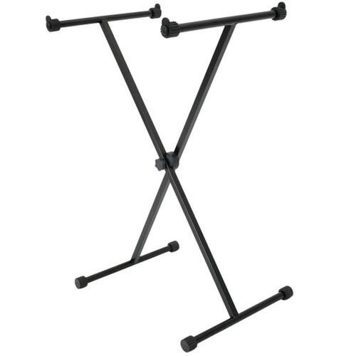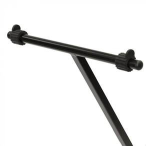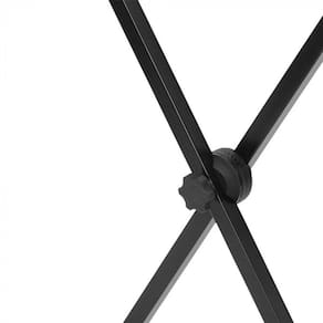 Suporte para Teclado com Sustentação em X, e altura Regulável. Possui ponteiras emborrachadas com abas ajustáveis para travamento do instrumento e catraca para travamento. Excelente qualidade e custo benefício.