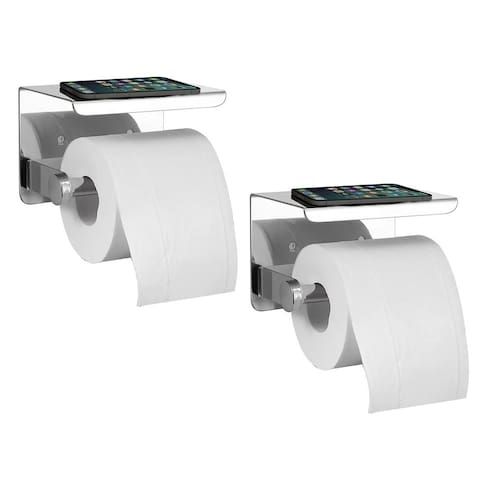 O suporte do rolo higiênico, a parte superior do suporte do rolo higiênico pode apoiar seu celular, tablet, relógio, lenços umedecidos, óculos e outros pequenos objetos quando você estiver no banheiro, muito prático e conveniente.
