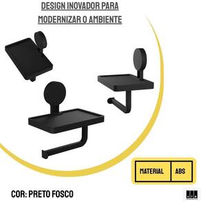 Suporte Papel Higiênico Porta Lenço Celular Preto Fosco