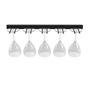 Nosso porta taças permite a armazenagem de taças com bojo de até 12cm de diâmetro. São fabricados em aço e possuem acabamento com pintura eletrostática na cor preta. Ponteiras em vinil e materiais de engenharia. O charme que faltava para a sua adega. Parafusos e buchas para fixação acompanham o produto. Ean: 7892051410289