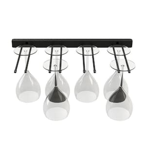Nosso porta taças permite a armazenagem de taças com bojo de até 12cm de diâmetro. São fabricados em aço e possuem acabamento com pintura eletrostática na cor preta. Ponteiras em vinil e materiais de engenharia. O charme que faltava para a sua adega. Parafusos e buchas para fixação acompanham o produto. Ean: 7892051390284