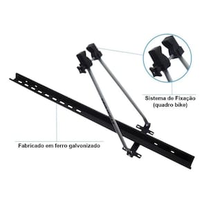 Prático e seguro o suporte de bicicleta projecar é fixado facilmente sobre as travessas ou racks de teto do veículo o veículo deve possuir rack ou travessa de teto . Fabricado em aço galvanizado, possui braços emborrachados que se ajusta ao quadro e tiras para prender as rodas da bicicleta.