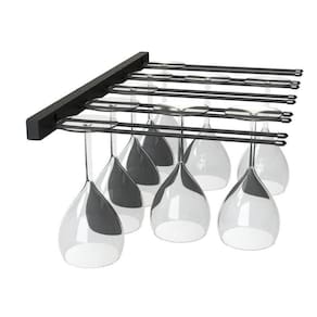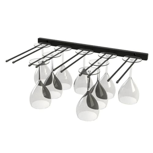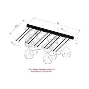 nosso porta taças permite a armazenagem de taças com bojo de até 12cm de diâmetro. São fabricados em aço e possuem acabamento com pintura eletrostática na cor preta. Ponteiras em vinil e materiais de engenharia. O charme que faltava para a sua adega. Parafusos e buchas para fixação acompanham o produto.