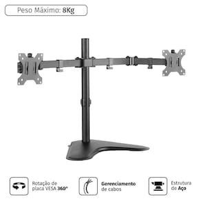 é um braço de monitor, cuja junção dupla pode ser apertada, para que você possa ajustar exatamente como quiser. Construído em aço de alta qualidade, este suporte robusto, resiste a arranhões e suporta telas de até 8 kg e 32 "de tamanho. Possui painel VESA destacável, basta parafusar o monitor no painel e deslizar de volta para o suporte.