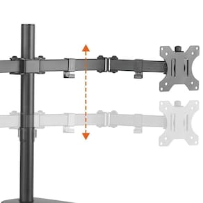 Com muita praticidade possui gerenciador de cabos e ajuste de altura, permitindo que os monitores fiquem a altura dos seus olhos. Suporta até 8 kg e possui pintura eletroestática para maior durabilidade e resistência a poeira.